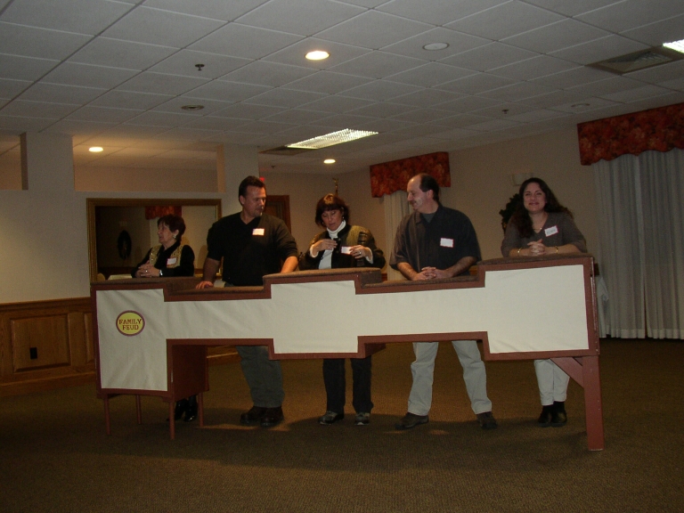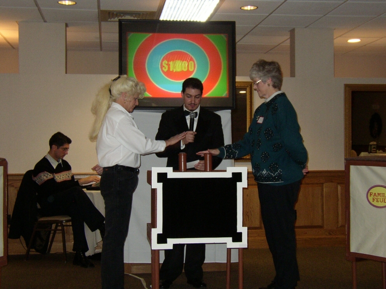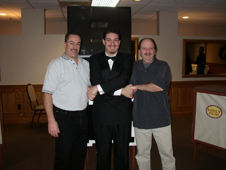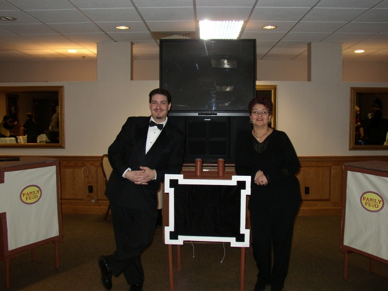 Years later, me and Mom, same pose, on the REAL Family Feud Live Set