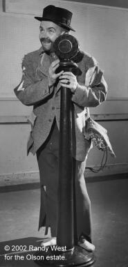 sold time, wrote scri Young Johnny Olson began to develop a philosophy about announcing that he carried with him for many years. He wrote, “It takes a good voice to grab [the audience’s] lethargic, wandering attention and hold it long enough to tell them what you and your sponsor want them to hear. A good voice involves more than a high decibel level… A voice without undue inflection may charm, soothe, calm or arouse. A voice can also repel, infuriate or actually make a listener ill”. John would laughingly cite a 1968 article in the Medical World News that a friend had brought to him from a doctor’s office. The headline read “Sound of Announcer’s Voice Jars Listener into Seizure”. It was the story of a woman treated by a Dr. Francis M. Forster at the University of Wisconsin Epilepsy Center who was literally thrown into fits by the sound of three specific radio announcers. In the article Dr. Forster is quoted as saying that she believed it wasn’t the broadcasters words, but their “prosody-variation in pitch, rhythm, and stress of pronunciation” that were responsible for the seizures. Johnny lived the vagabond life of a radio journeyman, advancing from the KGDA experience, through pharmacy classes at the University of Minnesota, back to WIBA in Madison, through part time work as a soda jerk, court reporter, short-order cook, and through a series of flings in the world of music. Before “talkies”, John sang at the local movie house between the silent pictures. While performing at The Wonderland Theater he always remembered his mother’s admonition to “speak up”. Later, John carried that advice to new opportunities as vocalist with “The Rainbow Revelers”, as founder of “The Rhythm Rascals”, as singer for Heinie’s Grenadiers, and as vocalist and manager for Hip Haynes’ “The Hips Commanders”. Perhaps somewhere, 78-rpm records of “The Hips Commanders” on the Broadway Record label still exist, with a young John Olson crooning “Wabash Moon” and “Walking My Baby Back Home”.