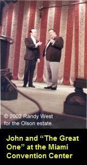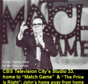 The tribute that Johnny might be proudest of comes from those he worked with through the years, the directors, stage managers, stylists, stagehands, lighting, camera and sound people. Since 1998 I have had a number of opportunities to work at John’s podium in Studio 33 at CBS Television City, the recently christened “Bob Barker Studio”. His many friends and co-workers from the thousands of episodes he taped there still remember him fondly, some with great affection. They are unanimous in their admiration for John and in their high regard for him as an always warm, pleasant, up-beat colleague and friend. The most frequently repeated comment about Johnny Olson leaves a legacy he would undoubtedly be proud of: “He was always the consummate professional”. |