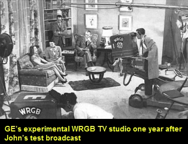 “Ladies Be Seated” would prove to be an important addition to the Olson resume, and another example of the value of being at the right place at the right time. John was honing his ad-lib skills and further developing his energetic, fun and friendly style during the birth of a new entertainment medium. In its infancy, television was hungry for new talent. John had the ability, ambition and passion; his success with “Ladies Be Seated” on radio made John an obvious choice for a landmark test of the new medium. John remembered the Sunday morning when the entire cast and crew of “Ladies Be Seated” headed to one of only six television stations in existence in the United States at the time, General Electric’s experimental W2XB, recently re-christened WRGB. It was to be a broadcast that would garner press coverage, so to add to the visual appeal of the event the newly crowned “Miss WJZ”, a young Bess Myerson, was included in the entourage.